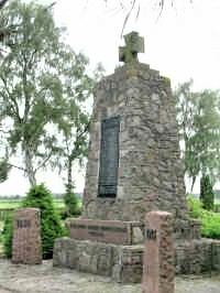 Auf dem Friedhof von Elze Obelisk aus Natursteinen aufgemauert, auf der Spitze ein Eisernes Kreuz. In der Vorderseite eingelassen eine Tafel mit den Namen