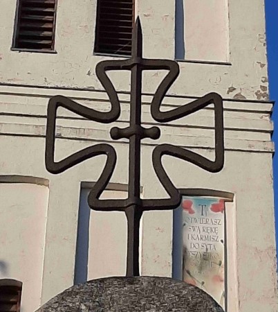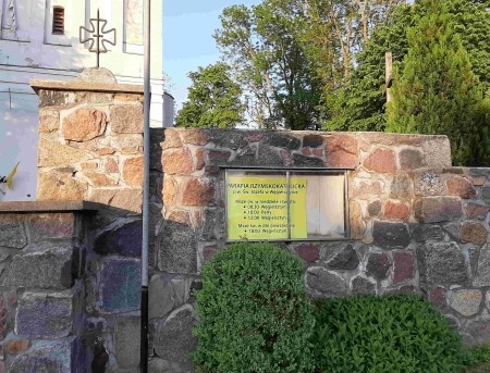 Nach 1945 wurde in Ostpreußen die deutsche Bevölkerung vertrieben und die meisten Denkmäler abgerissen, beschädigt oder umgewidmet. Hier wurde die Tafel zerstört und nur noch das EK erinnert an die ehemalige Bedeutung dieses Teils der Kirchhofmauer. Es sind leider nur sehr schlechte Aufnahmen des alten Denkmals auffindbar. Gute Aufnahmen oder Informationen zu den Inschriften werden gesucht.