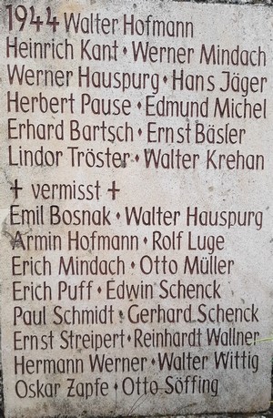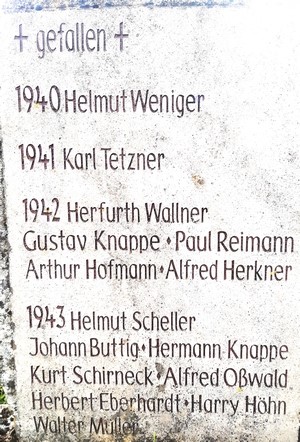Die Tafeln mit den Namen der Opfer des Zweiten Weltkrieges befinden sich auf dem derzeit betriebenen Friedhof, der etwas außerhalb des Ortes Engerda liegt. Zusammen mit dem von der Künstlerin Elly-Viola Nahmmacher gestalteten Holzkreuz bilden sie ein Denkmal für die im Zweiten Weltkrieg gefallenen und vermissten Soldaten.