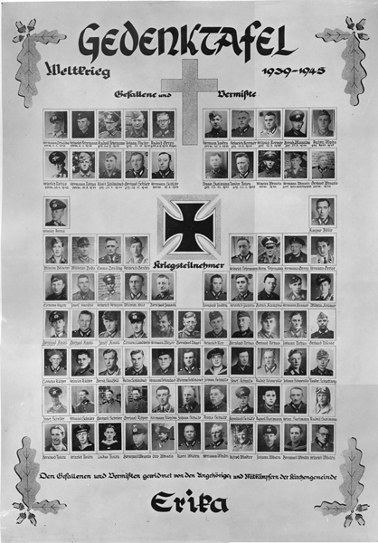 Ehrentafel für die Gefallenen, Vermissten und Teilnehmer am 2. Weltkrieg aus Privatbesitz.