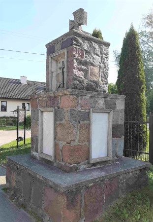 Nach 1945 wurde in Ostpreußen die deutsche Bevölkerung vertrieben und die meisten Denkmäler abgerissen, beschädigt oder umgewidmet. An diesem Denkmal wurden die ursprünglichen Tafeln mit den 56 Namen zerschlagen. Nach der politischen Wende wurden neue zweisprachige Tafeln angebracht (ohne Namen).