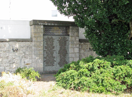 Standort ist an der Flugplatzstraße im Bereich der Einmündung einer unbenannten Seitenstraße in einer kleinen, von einer Mauer eingefassten Anlage.