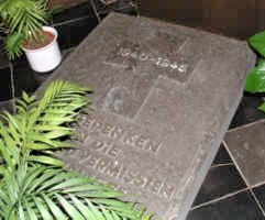 Vor dem Ehrenmal erinnert eine massive Gedenkplatte an die Toten und Vermissten im Zweiten Weltkrieg.
