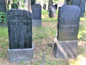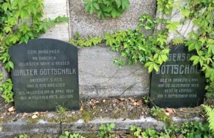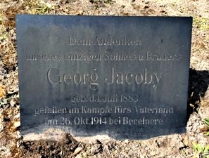 Gedenken auf dem Grabstein der Mutter Babette Jettchen Frank, geb. Steindecker (1855-1923): „Ihre letzten Jahre erfüllte trauernde Erinnerung an ihren … gefallenen Sohn ...“ |