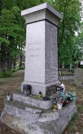 Nach 1945 wurde in Westpreußen die deutsche Bevölkerung vertrieben und die meisten Denkmäler abgerissen, beschädigt oder umgewidmet. Dieses Denkmal ist noch in seiner alten Form erhalten. Es könnte früher von einem Adler oder einem EK-Zeichen gekrönt worden sein. Die Inschriften sind teilweise nur noch mit Hilfsmitteln lesbar.