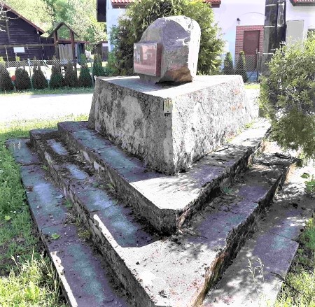 Nach 1945 wurde in Ostpreußen die deutsche Bevölkerung vertrieben und die meisten Denkmäler abgerissen, beschädigt oder umgewidmet. Dieses Denkmal wurde abgerissen und die Tafel ist verschwunden. Auf dem erhaltenen Sockel wurde ein Findling aufgesetzt mit einer Tafel zum Gedenken an die Gründung des Ortes vor 650 Jahren.