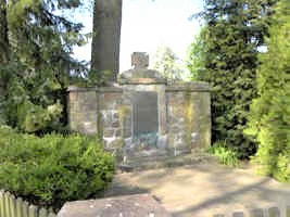 In einer kleinen umzäunten Anlage das Ehrenmal für die Kriegstoten beider Weltkriege: