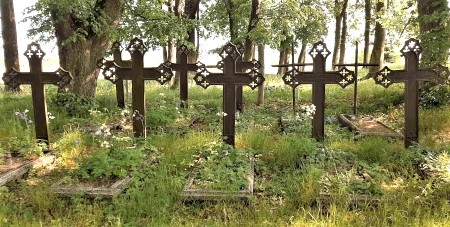 Grab eines Gefallenen des Ersten Weltkriegs auf der Erbbegräbnisstätte der Gutsbesitzer Familie: Gusseisernes Kreuz für einen gefallenen Leutnant.