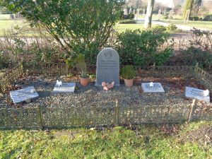 Auf dem neuen Friedhof in Garding findet man einzelne Grabsteine, auf denen Namen von Kriegstoten verzeichnet sind.