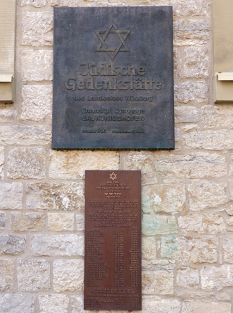 ZUM GEDENKEN AN UNSERE EHEMALIGEN JÜDISCHEN MITBÜRGER VON GAUKÖNIGSHOFEN, DIE UNTER DER NAZI-DIKTATUR AM 21.03.1942 VERSCHLEPPT UND ERMORDET WORDEN SIND.