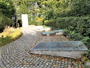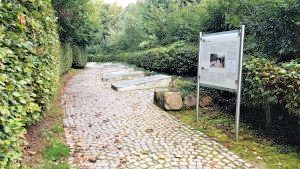 Im Januar 1960 wurde mit einer Sammlung zugunsten einer Gedenkstätte für die Gefallenen der (deutschen) Minderheit in den beiden Weltkriegen begonnen. Am 18. August 1962 wurde die schlichte und der natürlichen Umgebung angepasste Gedenkstätte eingeweiht. Sie besteht aus zwölf Tafeln, entsprechend den Kriegsjahren, auf denen die Jahreszahl und bei den Kriegsfreiwilligen des Zweiten Weltkrieges die Namen der Gefallenen und Vermissten festgehalten sind.