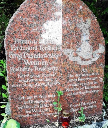 Gedenkstein für Oberst von Posadowsky-Wehner aus rotem Granit.