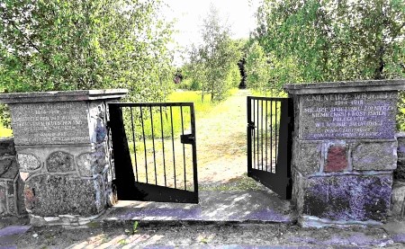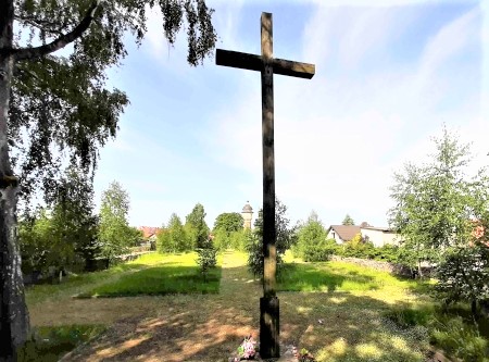 Kriegsgräberstätte an der Suwalski Straße für deutsche und russische Soldaten, gefallen oder verstorben im Ersten Weltkrieg: Rechteckige Fläche von einer Natursteinmauer umrandet. Drei Wege führen an sechs Grabreihen entlang zur abschließenden halbrunden Mauer, vor der ein hohes Holzkreuz steht. Die äußeren Reihen haben stehende Grabsteine, die inneren vier Reihen flache Steine.