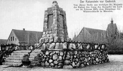 Kriegsgräberstätte für Gefallenen des Ersten Weltkriegs in der Nähe der Kirche an der Hauptstraße: Rechteckige Form mit einem Holzkreuz in der Mitte, das auf einer durch eine Feldsteinmauer erhöhten Fläche steht. Dies war der Sockel des sogenannten Kaiserstein Denkmals, der zu Ehren der Kämpfer bei Grabnick im Februar 1915 errichtet wurde (Stele aus Natursteinen mit eingelassenen Tafeln).