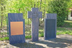 Beidseitig je eine aufrechte Platte mit Inschrifttafel.