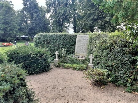 Gedenkstein umgeben von einer Hecke auf dem Friedhof Schulstraße.