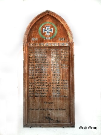Holztafel in der Dorfkirche zu Groß Grenz. Ergänzt mit Angaben zu weiteren Personen, die dort gelebt haben.
