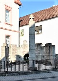 An der Ecke Kirchstraße/Rheinstraße, neben der ehemaligen Schule, befindet sich in einem Kiesbett ein durch ein schmiedeeisernes Gitter abgetrenntes Ehrenmal. Eine dreieckige Steinsäule, sechsteilig durch Fugen getrennt und oben aufgesetztem Kreuz. Unten sind drei Namen von 1870-71 Gefallenen eingemeißelt.