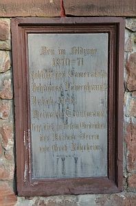 Im nahe gelegenen Friedhof ist ein Gedenkstein für die 1870-71 Gefallenen in die Mauer eingelassen. Daneben befindet sich noch ein Grabstein für einen Gefallenen des Ersten Weltkriegs, der hier bestattet wurde.