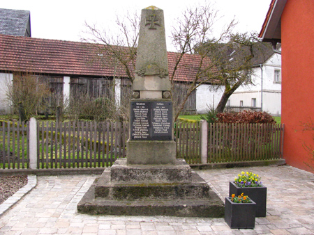 Steinstele mit Granittafel in der Ortsmitte.