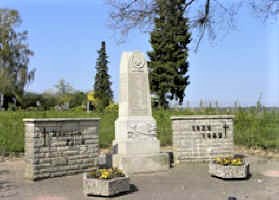 Am südlichen Rand des Friedhofs in Hackenstedt das Ehrenmal für die Kriegstoten des Ersten Weltkrieges mit den Namen der 16 Gefallenen;
