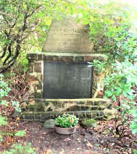 Aus Feldsteinen gemauertes Denkmal am Friedhof Hahnenknoop. Auf dem oberen Stein steht der Dank der Gemeinde, auf der Tafel innerhalb des Feldsteinrahmens