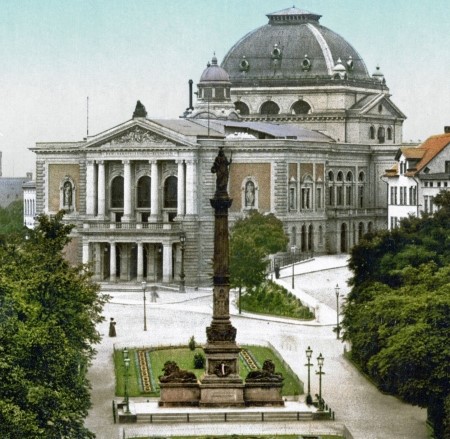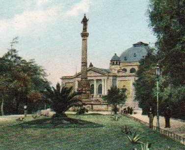 Darüber umrundeten Reliefs eine Engelsfigur und weiterer unbekannter Figuren die Säule. Das Denkmal wurde nach 1945 abgerissen.