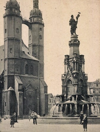 Ehemaliges Denkmal für die Gefallenen des Krieges 1870/71 auf dem Marktplatz in Form eines Springbrunnens: In einem runden Bassin stand eine hohe, sehr stark verzierte Stele mit der krönenden Figur des Ulrich von Hutten in Landsknechtsuniform mit einer Standarte und einem Degen in den Händen.