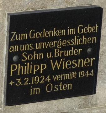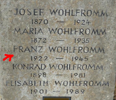 vermisst seit 02.1945, Landwirt; 1939 wohnhaft in Würzburg; als WOHLFART M. gelistet, verschollen in Gefangenschaft |