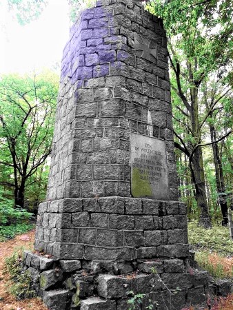 Der Ehrenhain befindet sich nordöstlich des Ortes im ansteigenden Gelände im hügligen Wald, östlich der Straße am Anfang des Abzweigs nach Pawlowice Wielkie (leider keine GPS-Daten vorhanden). Mit Hilfsmitteln konnten die Namen mit Sicherheit abgelesen werden. Bei einigen Daten bestehen Unsicherheiten. Ein Stein lag 2022 mit der Vorderseite nach unten und konnte nicht abgelesen werden. Alle anderen vorhandenen und sichtbaren wurden entziffert. Ob sie noch komplett sind oder einige im Boden versunken oder weggeschleppt worden sind ist unklar.