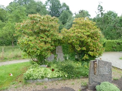 Friedhof: Gepflegte kleine Kriegsgräberstätte, deren Steine jedoch so mit Efeu zugewachsen ist, dass der Wortlaut der Inschriften nur zu erahnen ist. Auch von den Grabplatten ist nur eine nicht zugewachsen.