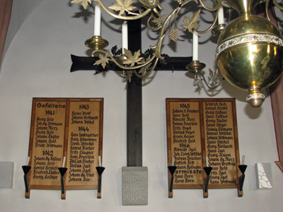 In der evangelischen Kirche sind die Gefallenen aller Kriege aus der Pfarrei verzeichnet.