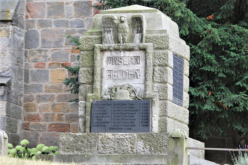 Ehrenmal zum Gedenken an die Opfer der beiden Weltkriege neben der Holtensener Kirche.