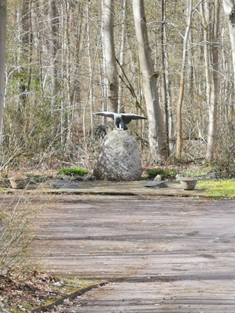 Durch den Zaun lässt sich jedoch ein Denkmal mit einem Adler erkennen.