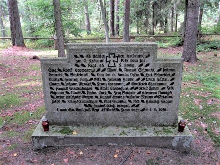 Nach 1945 wurde in Ostpreußen die deutsche Bevölkerung vertrieben und die meisten Denkmäler abgerissen, beschädigt oder umgewidmet. Im Ort ist kein Gedenken an gefallene Einwohner erhalten. Der evangelische Friedhof ist rudimentär erhalten. Der große Soldatengrabstein wurde saniert.
