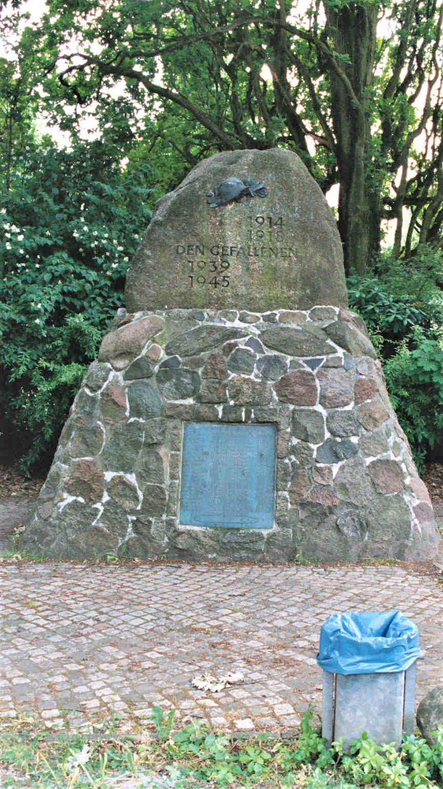 Denkmal für die Gefallenen beider Weltkriege auf einer Verkehrsinsel zwischen Denksteinweg und der Straße Bei den Höfen.