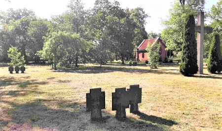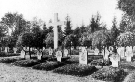 Nach 1945 wurde in Ostpreußen die deutsche Bevölkerung vertrieben und die meisten Denkmäler abgerissen, beschädigt oder umgewidmet. Hier wurde die große Kriegsgräberstätte komplett abgeräumt, es stehen nur noch einige symbolische Grabkreuze. Nur der Stein des Soldaten Schnetka steht neben der Kapelle. Der ganze Friedhof dient heute als Park und die meisten anderen Zivilgräber sind ebenfalls abgeräumt. Die hier aufgelisteten Namen entstammen dem Buch von M. Dehnen: Die Kriegsgräber in Ostpreussen von 1914/15. Dort sind nur 40 Namen aufgelistet. Die anderen 222 angeblich dort liegenden deutschen Soldaten werden sicher nicht alle unbekannt sein, aber deren Namen sind wohl verloren.