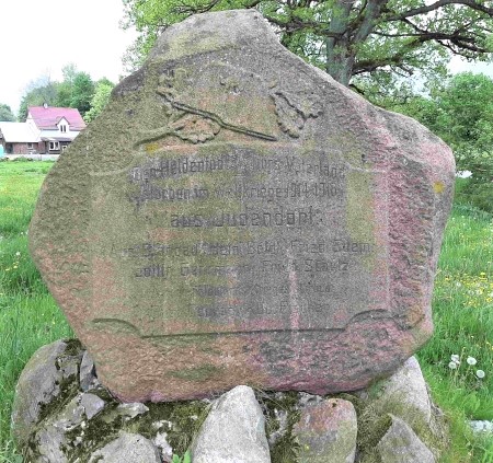 Nach 1945 wurde in Ostpreußen die deutsche Bevölkerung vertrieben und die meisten Denkmäler abgerissen, beschädigt oder umgewidmet. Dieses Denkmal ist in seiner Form noch erhalten, steht aber mittlerweile auf Privatgelände und ist nicht einfach zugänglich. Es ist auch schwer abzulesen.