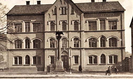 Siegessäule samt Adler auf viereckigem Sockel mit Stufen. Laut dem Stadtchronisten Heinz Berger wurde dieses Denkmal 1946 entfernt.