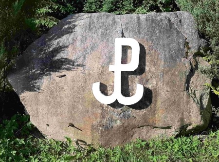 Der Stein stand Jahrzehnte naturbelassen im Gelände. Im Jahre 2023 waren daran die Buchstaben P und W befestigt, die für die polnische Wiederstandbewegung des 2. Weltkriegs Polska Walcząca (Kämpfendes Polen) stehen.