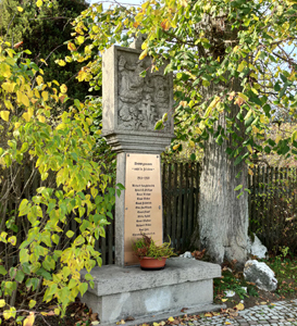 Der Bildstock mit der neu aufgesetzten Namenstafel steht in Sichtweite des Feuerwehrhauses.