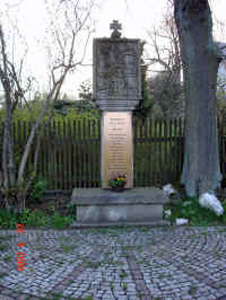 Das Relief zeigt Kriegsgräber über denen vermutlich Jesus auf einer Wolke schwebt, daneben ein kleiner betender Engel.