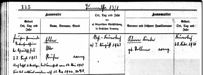 Eintrag im evangelisches Kirchenbuch Band 215, Familienregister Feuerbach