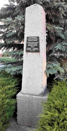Die alte Widmung ist nicht mehr erkennbar. Nur eine neue zweisprachige Widmungstafel ist angebracht. Die Beschädigungen am unteren Quader weisen darauf hin, dass das Denkmal wahrscheinlich abgerissen und nach der politischen Wende wieder errichtet wurde.