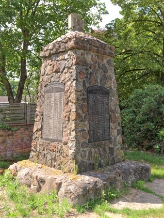 Das Denkmal von 1924 aus Naturstein mit drei Granitplatten, in die die Namen der Gefallenen des Ersten und Zweiten Weltkriegs eingraviert sind, steht an der Dorfstraße (Ecke Parkstraße). Oben aufgesetzt ist ein Eisernes Kreuz aus Stein.