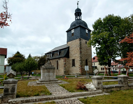 Denkmalstele für den Feldzug 1870/71 in der Nähe der Kirche.