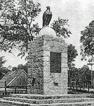 Nach der Übernahme des Ortes durch die neuen polnischen Machthaber 1945 wurde die deutsche Bevölkerung vertrieben und das Denkmal umgewidmet. Heute trägt es eine polnische Inschrift und hat einen kleinen polnischen Adler an der Spitze.