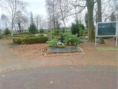 Drei Gefallenentafeln. Diese sind nach dem Ende des Zweiten Weltkrieges von dem Kriegerdenkmal an der Strandstraße (jetzt O.d.F.-Denkmal) auf den neuen Friedhof verbracht worden.