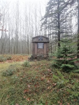 Das Denkmal befindet sich in einem Wald an der B104 gegenüber des Panzerdenkmals auf einen Hügel.