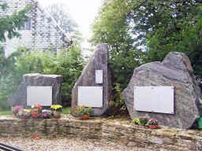 Drei bearbeitete Natursteine mit aufgesetzten Tafeln.